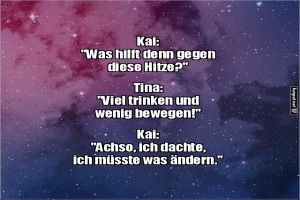 | Humorvoller Tipp gegen die Hitze Bild (220.13 KB) 6Lustiges → klasse Sprüche und Witze | Lustiges → klasse Sprüche und Witze | 21.06.-18:58 | Talia | |