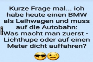 | Lustige BMW-Frage auf der Autobahn Bild (212.82 KB) 12Lustiges → klasse Sprüche und Witze | Lustiges → klasse Sprüche und Witze | 23.06.-22:39 | Annika-71 | |
