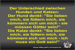 | Der Unterschied zwischen Hunden und Katzen Bild (54.37 KB) 1Lustiges → klasse Sprüche und Witze | Lustiges → klasse Sprüche und Witze | 22.06.-13:56 | Fossy | |