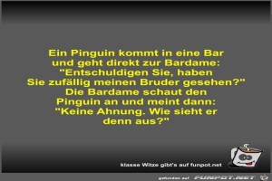 | Ein Pinguin kommt in eine Bar und geht direkt zur Bardame Bild (35.82 KB) 6Lustiges → klasse Sprüche und Witze | Lustiges → klasse Sprüche und Witze | 18.10.22-12:38 | Fossy | |