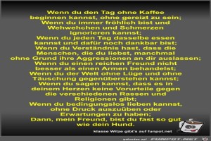 | Wenn du den Tag ohne Kaffee beginnen kannst Bild (83.87 KB) 13Lustiges → klasse Sprüche und Witze | Lustiges → klasse Sprüche und Witze | 06.10.22-17:05 | Fossy | |