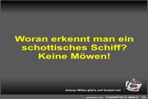| Woran erkennt man ein schottisches Schiff? Bild (23.85 KB) 5Lustiges → klasse Sprüche und Witze | Lustiges → klasse Sprüche und Witze | 07.10.22-09:25 | Fossy | |