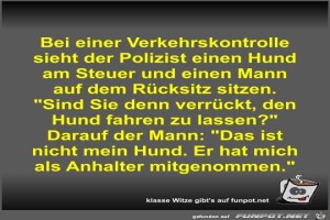 | Bei einer Verkehrskontrolle sieht der Polizist einen Hund... Bild (51.98 KB) 9Lustiges → klasse Sprüche und Witze | Lustiges → klasse Sprüche und Witze | 12.09.22-14:47 | Fossy | |