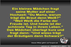 | Ein kleines Mädchen fragt seine Mutter auf einer Hochzeit Bild (54.57 KB) 5Lustiges → klasse Sprüche und Witze | Lustiges → klasse Sprüche und Witze | 14.09.22-13:33 | Fossy | |