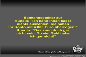 | Bankangestellter zur Kundin Bild (33.3 KB) 6Lustiges → klasse Sprüche und Witze | Lustiges → klasse Sprüche und Witze | 13.09.22-13:49 | Fossy | |