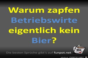 | Bier zapfen Bild (64.18 KB) 6Lustiges → klasse Sprüche und Witze Das fragt man sich wirklich. Wieso heißen sie denn sonst überhaupt Wirt? | Lustiges → klasse Sprüche und Witze | 12.09.22-15:43 | ||
