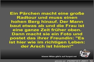 | Ein Pärchen macht eine große Radtour und muss einen hohen... Bild (49.4 KB) 4Lustiges → klasse Sprüche und Witze | Lustiges → klasse Sprüche und Witze | 03.09.22-17:15 | Fossy | |