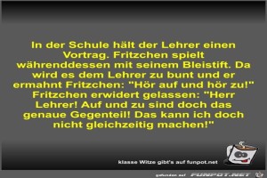 | In der Schule hält der Lehrer einen Vortrag Bild (48.56 KB) 3Lustiges → klasse Sprüche und Witze | Lustiges → klasse Sprüche und Witze | 04.09.22-12:53 | Fossy | |