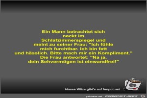 | Ein Mann betrachtet sich nackt im Schlafzimmerspiegel und... Bild (30.73 KB) 8Lustiges → klasse Sprüche und Witze | Lustiges → klasse Sprüche und Witze | 05.09.22-10:49 | Fossy | |