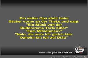 | Ein netter Opa steht beim Bäcker vorne an der Theke und sagt Bild (32.61 KB) 9Lustiges → klasse Sprüche und Witze | Lustiges → klasse Sprüche und Witze | 29.08.22-11:22 | Fossy | |