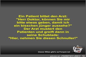 | Ein Patient bittet den Arzt Bild (37.79 KB) 5Lustiges → klasse Sprüche und Witze | Lustiges → klasse Sprüche und Witze | 27.08.22-14:14 | Fossy | |