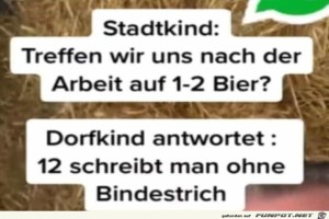 | Stadtkind - Dorfkind Bild (64.47 KB) 9Lustiges → klasse Sprüche und Witze | Lustiges → klasse Sprüche und Witze | 28.08.22-13:18 | ||