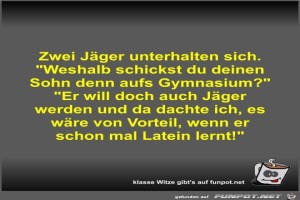 | Zwei Jäger unterhalten sich Bild (40.24 KB) 4Lustiges → klasse Sprüche und Witze | Lustiges → klasse Sprüche und Witze | 27.08.22-18:40 | Fossy | |
