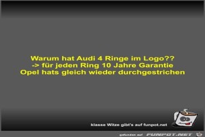 | Warum hat Audi 4 Ringe im Logo? Bild (22.46 KB) 7Lustiges → klasse Sprüche und Witze | Lustiges → klasse Sprüche und Witze | 20.08.22-18:03 | Fossy | |