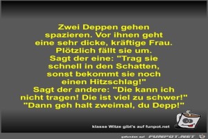 | Zwei Deppen gehen spazieren Bild (46.85 KB) 4Lustiges → klasse Sprüche und Witze | Lustiges → klasse Sprüche und Witze | 20.08.22-13:54 | Fossy | |