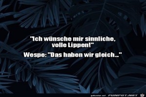 | Wespen erledigen das für dich Bild (80.43 KB) 17Lustiges → klasse Sprüche und Witze | Lustiges → klasse Sprüche und Witze | 05.08.22-08:56 | ||