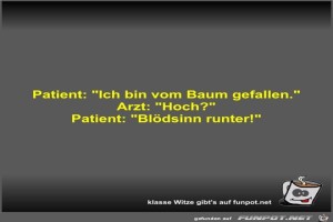 | Patient: Ich bin vom Baum gefallen Bild (18.82 KB) 4Lustiges → klasse Sprüche und Witze | Lustiges → klasse Sprüche und Witze | 05.08.22-11:02 | Fossy | |