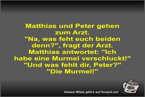 | Matthias und Peter gehen zum Arzt Bild (36.53 KB) 1Lustiges → klasse Sprüche und Witze | Lustiges → klasse Sprüche und Witze | 12.06.-17:01 | Fossy | |