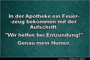 | Witz über Apotheke und Feuerzeug Bild (187.1 KB) 4Lustiges → klasse Sprüche und Witze | Lustiges → klasse Sprüche und Witze | 12.06.-22:14 | Valentino | |
