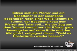 | Sitzen sich ein Pfarrer und ein Besoffener in der Eisenbahn Bild (50.21 KB) 5Lustiges → klasse Sprüche und Witze | Lustiges → klasse Sprüche und Witze | 27.07.22-09:56 | Fossy | |