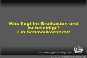 | Was liegt im Brotkasten und ist beleidigt? Bild (21.92 KB) 6Lustiges → klasse Sprüche und Witze | Lustiges → klasse Sprüche und Witze | 25.07.22-18:28 | Fossy | |