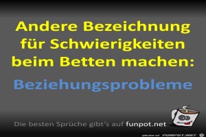 | Beziehungsprobleme Bild (75.12 KB) 12Lustiges → klasse Sprüche und Witze Beim Betten beziehen kann es immer zu Problemen kommen. Von daher ist diese Bezeichnung doch sehr raffiniert ;-) | Lustiges → klasse Sprüche und Witze | 25.07.22-14:12 | Fossy | |