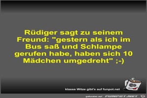 | Rüdiger sagt zu seinem Freund Bild (32.58 KB) 8Lustiges → klasse Sprüche und Witze | Lustiges → klasse Sprüche und Witze | 17.07.22-13:38 | Fossy | |