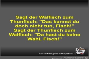| Sagt der Walfisch zum Thunfisch Bild (35.66 KB) 7Lustiges → klasse Sprüche und Witze | Lustiges → klasse Sprüche und Witze | 17.07.22-18:29 | Fossy | |