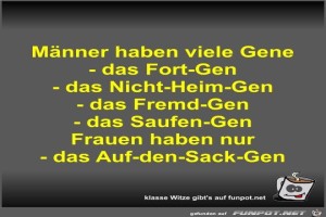 | Männer haben viele Gene Bild (38.88 KB) 4Lustiges → klasse Sprüche und Witze | Lustiges → klasse Sprüche und Witze | 12.07.22-10:00 | Fossy | |