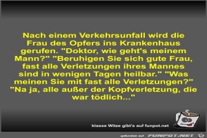 | Nach einem Verkehrsunfall wird die Frau des Opfers ins... Bild (49.65 KB) 3Lustiges → klasse Sprüche und Witze | Lustiges → klasse Sprüche und Witze | 13.07.22-10:38 | Fossy | |