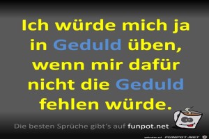 | In Geduld üben Bild (78.65 KB) 8Lustiges → klasse Sprüche und Witze Die Sache mit der Geduld ist eben so eine Sache ;-) | Lustiges → klasse Sprüche und Witze | 13.07.22-09:26 | ||