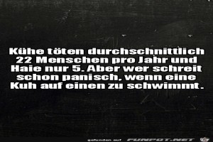 | Killerkuh Bild (86.8 KB) 2Lustiges → klasse Sprüche und Witze Hai, kuh, kühe, statistik, lustig, urlaub, meer, strand | Lustiges → klasse Sprüche und Witze | 02.07.22-18:13 | Pina | |