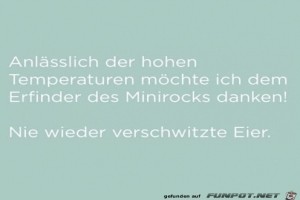 | Minirock Bild (32.29 KB) 2Lustiges → klasse Sprüche und Witze Hitze, sommer, minirock, lustig | Lustiges → klasse Sprüche und Witze | 01.07.22-17:34 | Marisa | |