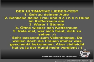 | DER ULTIMATIVE LIEBES-TEST Bild (51.24 KB) 5Lustiges → klasse Sprüche und Witze | Lustiges → klasse Sprüche und Witze | 26.06.22-13:33 | Fossy | |