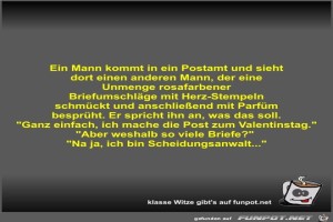 | Ein Mann kommt in ein Postamt und sieht dort einen anderen Bild (38.35 KB) 5Lustiges → klasse Sprüche und Witze | Lustiges → klasse Sprüche und Witze | 26.06.22-18:23 | Fossy | |