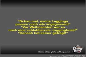 | "Schau mal, meine Leggings passen noch wie angegossen!" Bild (27.32 KB) 6Lustiges → klasse Sprüche und Witze | Lustiges → klasse Sprüche und Witze | 26.06.22-10:23 | Fossy | |