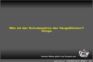 | Wer ist der Schutzpatron der Vergeßlichen? Bild (14.55 KB) 8Lustiges → klasse Sprüche und Witze | Lustiges → klasse Sprüche und Witze | 27.06.22-10:13 | Fossy | |