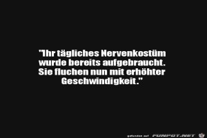 | Nervenkostüm aufgebraucht Bild (33.18 KB) 15Lustiges → klasse Sprüche und Witze | Lustiges → klasse Sprüche und Witze | 26.06.22-09:08 | Pina | |