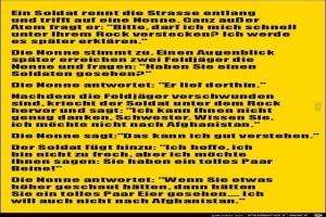 | Soldat auf der Flucht Bild (141.76 KB) 9Lustiges → klasse Sprüche und Witze | Lustiges → klasse Sprüche und Witze | 21.06.22-18:42 | Ava | |