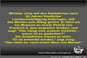 | Minister Jung will den SoldatInnen nach 62 Jahren... Bild (52.52 KB) 5Lustiges → klasse Sprüche und Witze | Lustiges → klasse Sprüche und Witze | 21.06.22-14:35 | Fossy | |