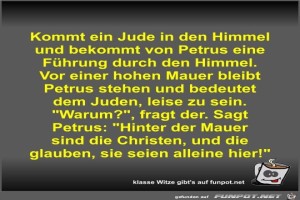 | Kommt ein Jude in den Himmel und bekommt von Petrus eine... Bild (52.91 KB) 4Lustiges → klasse Sprüche und Witze | Lustiges → klasse Sprüche und Witze | 11.06.22-13:45 | Fossy | |