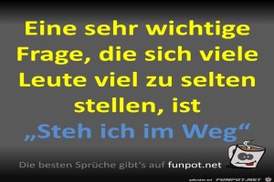 | Wichtige Frage Bild (83.29 KB) 12Lustiges → klasse Sprüche und Witze Diese Frage stellen sich viele Leute leider gar nicht, weil es ihnen egal ist, ob sie anderen im Weg stehen. | Lustiges → klasse Sprüche und Witze | 13.06.22-13:22 | ||