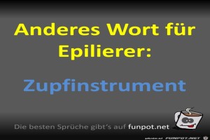 | Epilierer Bild (53.4 KB) 8Lustiges → klasse Sprüche und Witze Zupfen können die Epilierer auf jeden Fall ganz hervorragend. Von daher wäre der Name Zupfinstrument durchaus angebracht. | Lustiges → klasse Sprüche und Witze | 07.06.22-14:45 | ||