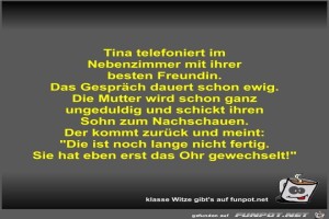 | Tina telefoniert im Nebenzimmer mit ihrer besten Freundin Bild (41.16 KB) 4Lustiges → klasse Sprüche und Witze | Lustiges → klasse Sprüche und Witze | 07.06.22-13:56 | Fossy | |