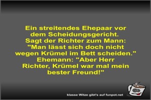 | Ein streitendes Ehepaar vor dem Scheidungsgericht Bild (39.96 KB) von Fossy am 06. Juni 2025 um 13:34 Uhr Lustiges → klasse Sprüche und Witze | Lustiges → klasse Sprüche und Witze | 06.06.-13:34 | Fossy | ||