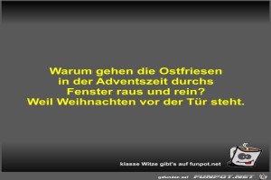 | Warum gehen die Ostfriesen in der Adventszeit durchs... Bild (24.59 KB) 3Lustiges → klasse Sprüche und Witze | Lustiges → klasse Sprüche und Witze | 05.06.22-18:09 | Fossy | |