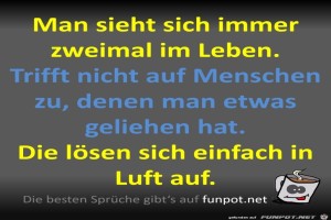 | Treffen Bild (82.07 KB) 12Lustiges → klasse Sprüche und Witze Das ist wahr. Wenn du jemanden nicht mehr sehen willst, dann leih ihm einfach etwas aus. Problem gelöst. | Lustiges → klasse Sprüche und Witze | 23.05.22-15:10 | Fossy | |