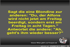 | Sagt die eine Blondine zur anderen Bild (44.02 KB) 8Lustiges → klasse Sprüche und Witze | Lustiges → klasse Sprüche und Witze | 13.05.22-13:18 | Fossy | |
