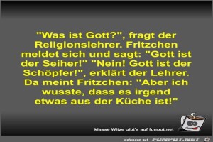 | Was ist Gott? Bild (45.21 KB) 11Lustiges → klasse Sprüche und Witze | Lustiges → klasse Sprüche und Witze | 12.05.22-13:36 | Fossy | |