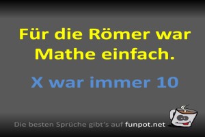 | Lustiger Spruch über römische Mathematik Bild (54.23 KB) 6Lustiges → klasse Sprüche und Witze Wenn x immer 10 ist, wäre mir Mathe auch leichter gefallen ;-) | Lustiges → klasse Sprüche und Witze | 04.06.-07:54 | Fossy | |